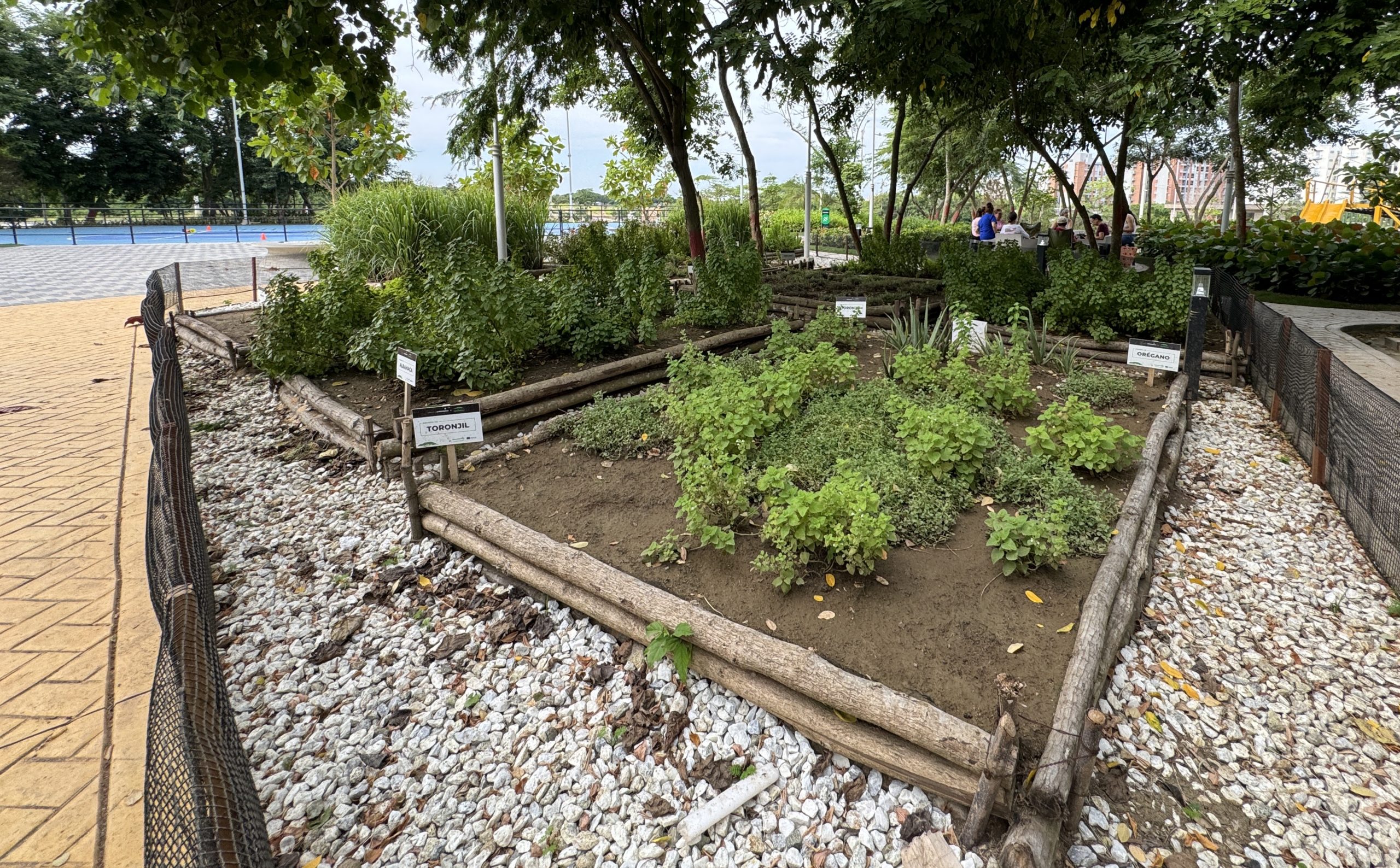 En el nuevo espacio se construyeron huertas comunitarias donde sembraron 300 plantas aromáticas y medicinales con la comunidad, como albahaca, limoncillo, toronjil, orégano, romero, sábila, cúrcuma, llantén acetaminofén y menta.